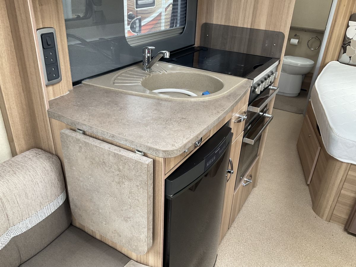 Great condition 4 berth fixed bed single axle model complete with Mover offering exceptional value for money with this stylish interior and 12 months warranty included. Great layout of front lounge, fixed double bed and full end washroom with shower cubicle. Modern styled caravan with neutral upholstery and large panoramic front window