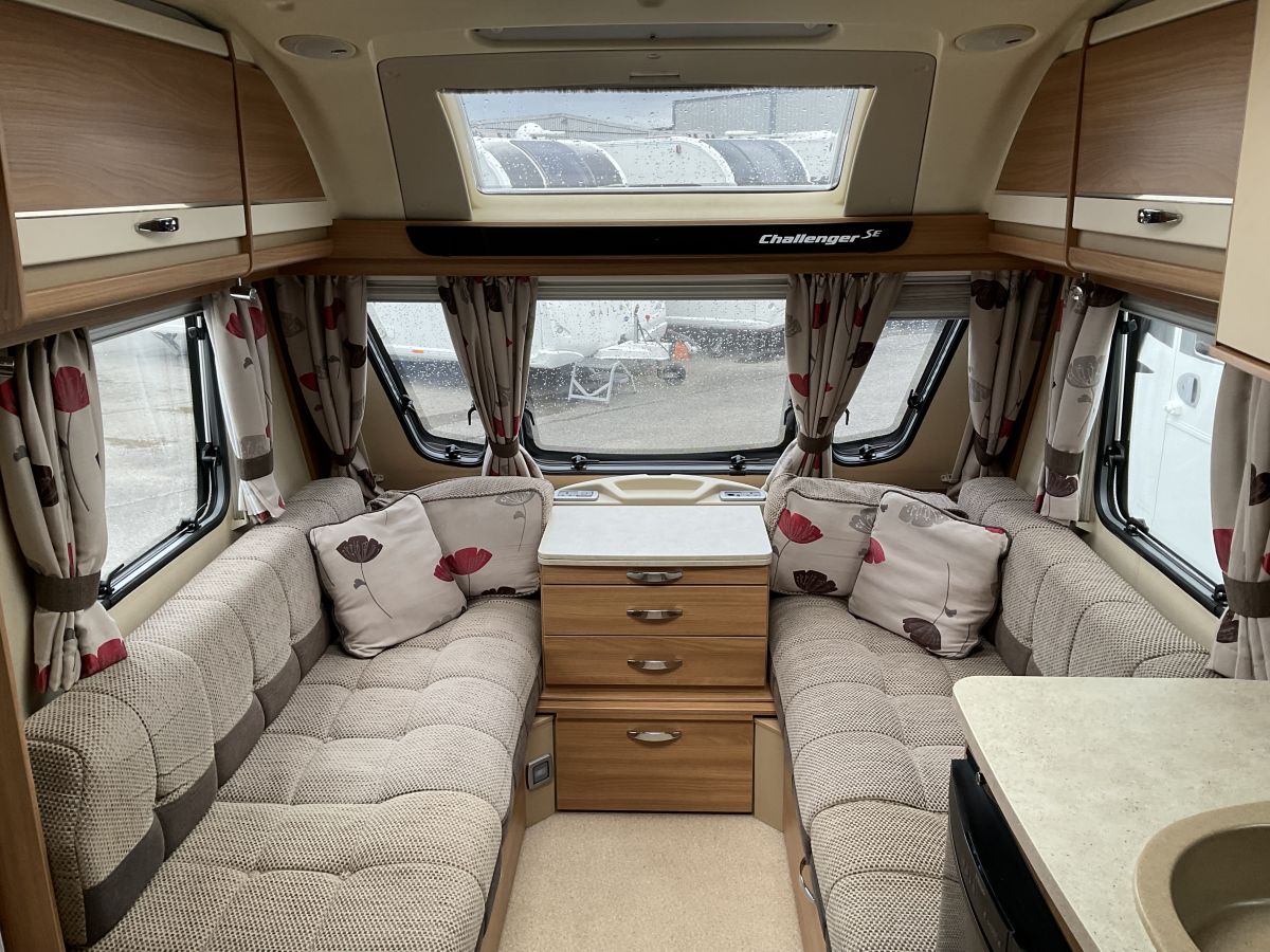 Great qquality, high spec single axle 4 berth Swift with great layout of front lounge, fixed double bed and spacious end washroom with separate shower cubicle. Modern interior and finished and complimented with large front panoramic window and Powrtouch mover already fitted.