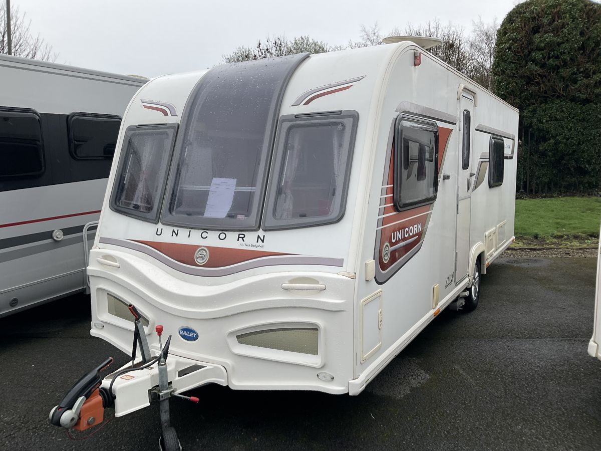 Really lovely condition 4 berth single axle, Bailey Alu-tech GRP constructed 4 berth top of the range model complete with a layout of: Large front lounge, fixed double bed and end washroom with good size shower. really elegant feel with large panoramic winodw giving the inside a bright and airy feel. Motor mover included