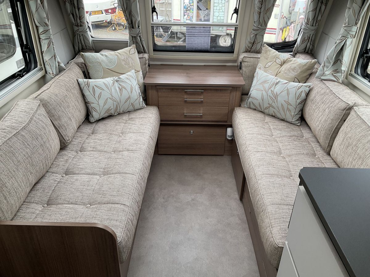 Lovely condition, top of the range single axle Unicorn with the lovely open plan and spacious layout of large front lounge, fixed double bed and full end washroom. Large front window lets in loads of light to this modern exterior, complete with Powrtouch Mover already fitted