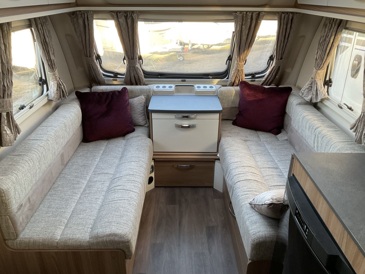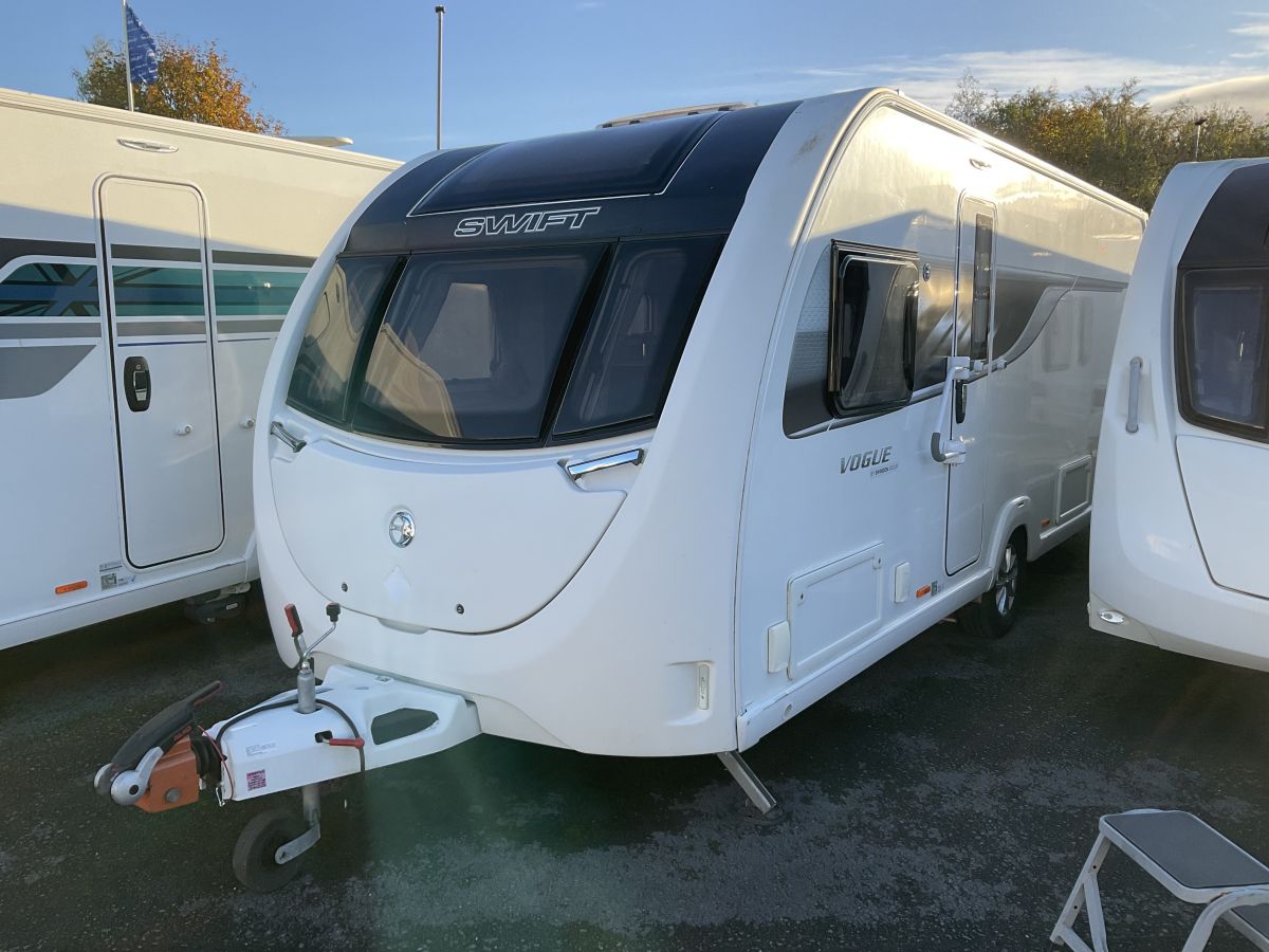 Really good condition, 4 berth single axle Swift 580, dealer special so packed with extras and exclusive upholstery and graphic scheme. Good spec model with great layout of large front lounge, transverse island double bed and full end washroom complete with shower cubicle. Large front panoramic window gives a really airy feel on this open plan model