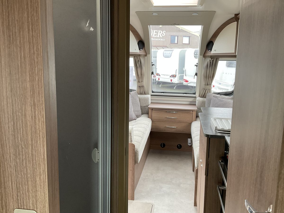 Our own dealer special model. This lovely 2020 has had brilliant extras added to it including Self-levelling system and Powrtouch mover. Alreay great spec being one of our special edition models and with a great layout of front lounge, central washroom and end bedroom with forward facing island double bed. The interior is bright and airy with exclusive modern neutral grey styled seating.