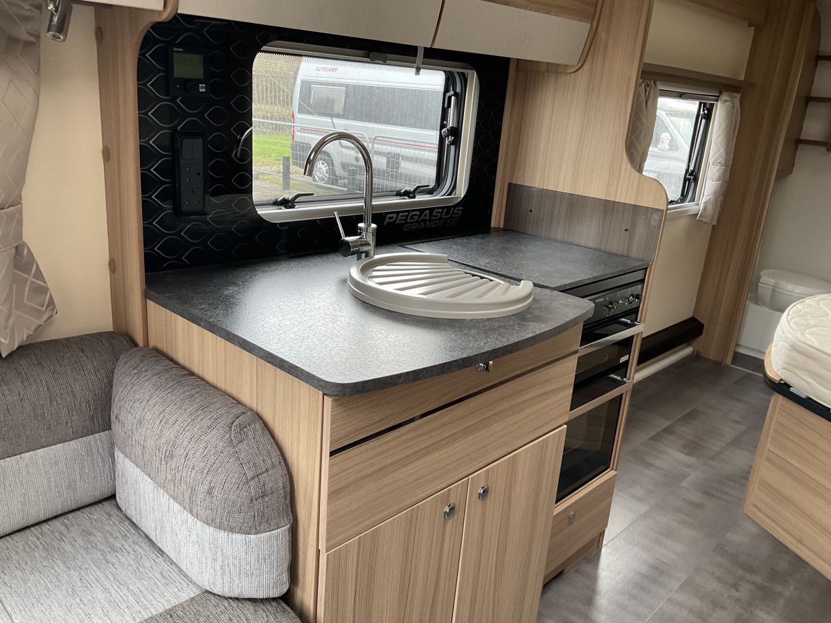 Good spec offering great value for money with Powrtouch mover already fitted. Extra spec includes: Truma Solar Panel, ATC trailer control, alloy wheels, external gas bbq point and external electric socket, GRP sides and roof, loose carpets, stereo with bluetooth, USB sockets, Microwave, electric hot plate and lots more