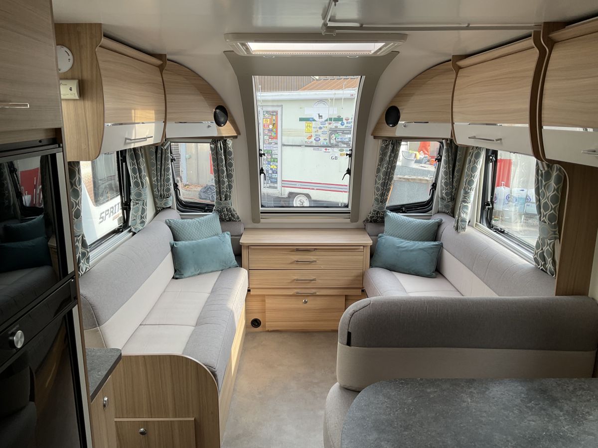 AWD Mover included. 8 Foot wide 6 berth family caravan with a great layout that includes: Large front lounge with long parallel seats, extra wide dinette that converts to a double and fixed double bed at the rear next to 1/4 washroom with shower cubicle. Modern and bright interior with neutral upholstery and panoramic window giving the caravan an open and airy feel. Best selling twin axle model on the market