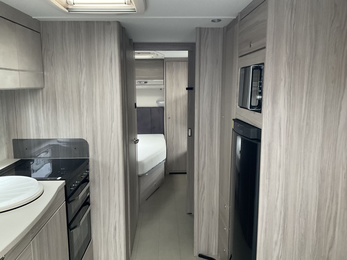 Fabulous 8 foot wide twin axle family caravan with a brilliant layout of large front lounge, central kitchen and washroom area and en dbedroom that houses a large double bed and fixed bunkbeds. Complete with AWD Powrtouch motor mover. this has a bright and airy interior, large panoramic windows and modern neutral interior. Great value for money