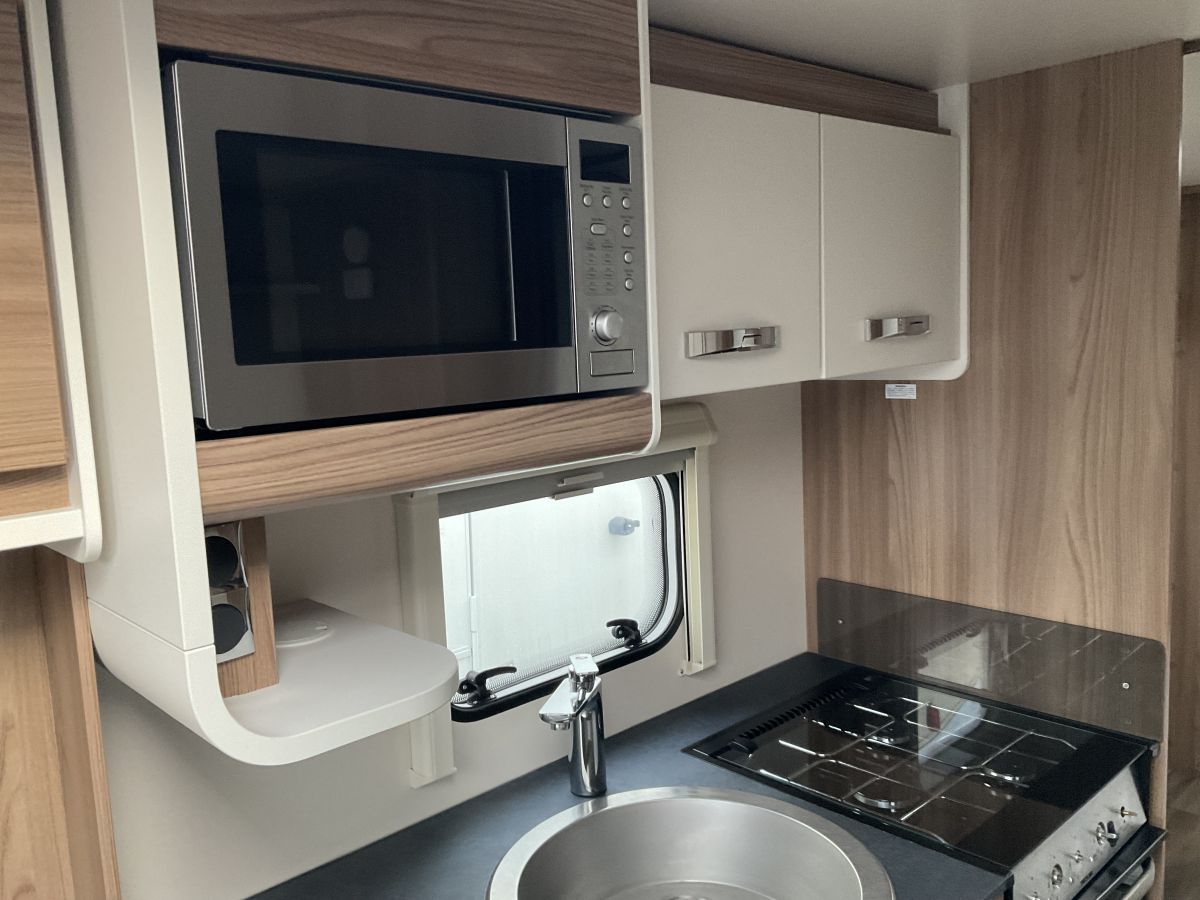 Lovely condition, 1 owner, single axle modern styled Sprite Major offering great value for money vs current ranges and spec. Great layout of: Front lounge, transverse island double bed and full end washroom with shower cubicle. Modern interior with large front panoramic window and neutral upholstery scheme. Mover fitted