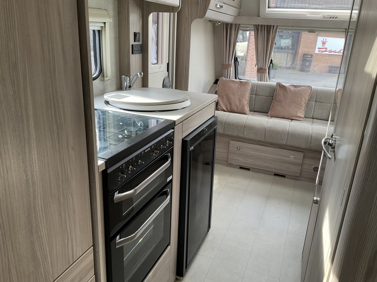 Lovely condition, compact fixed island bed single model fresh and lightweight example. Great layout on this Avante with a spacious L-shape front lounge, central kitchen and wetroom and an end bedroom with transverse island double bed. Rare layout but a lovely open feel with panoramic front window and modern neutral interior