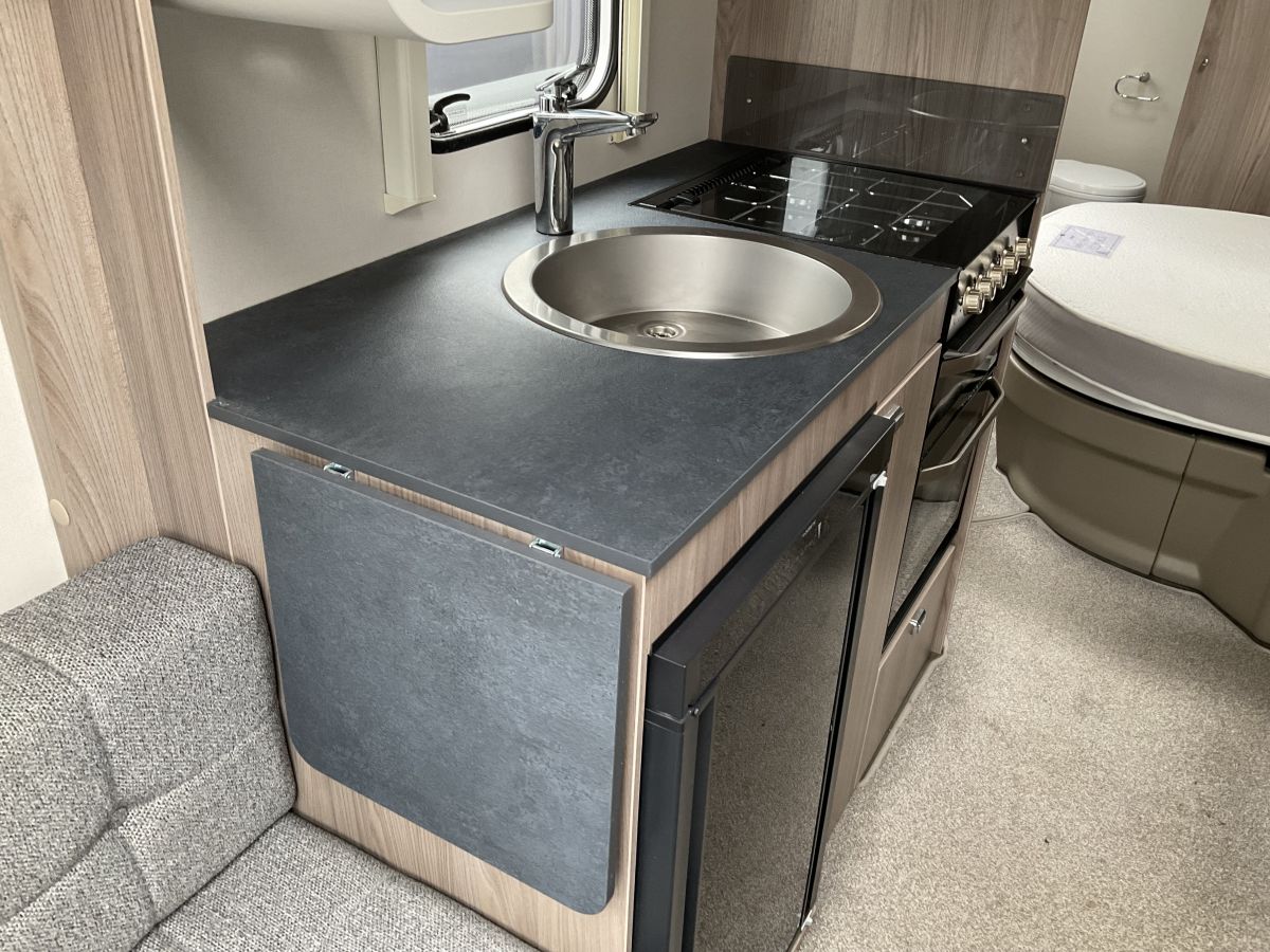 Lovely condition, 1 owner, modern/bright and airy 4 berth single axle lightweight Sprite with the in-demand layout of front lounge, transverse island double bed and full end washroom with shower. Grey neutral upholstery scheme with modern fixtures and fittings. Great example of this popular model