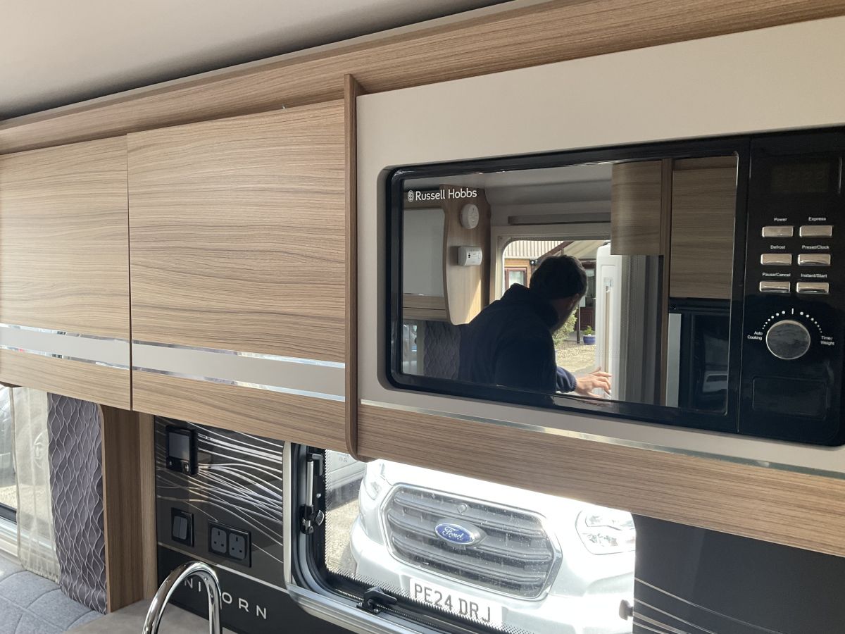 Amazing spec which includes: on-board water tank, Alde wet central heating system, ATC trailer control, Solar Panel, Alarm, Alko wheel lock, external gas bbq point and 240v socket, alloy wheels, loose carpets, microwave, stereo system.