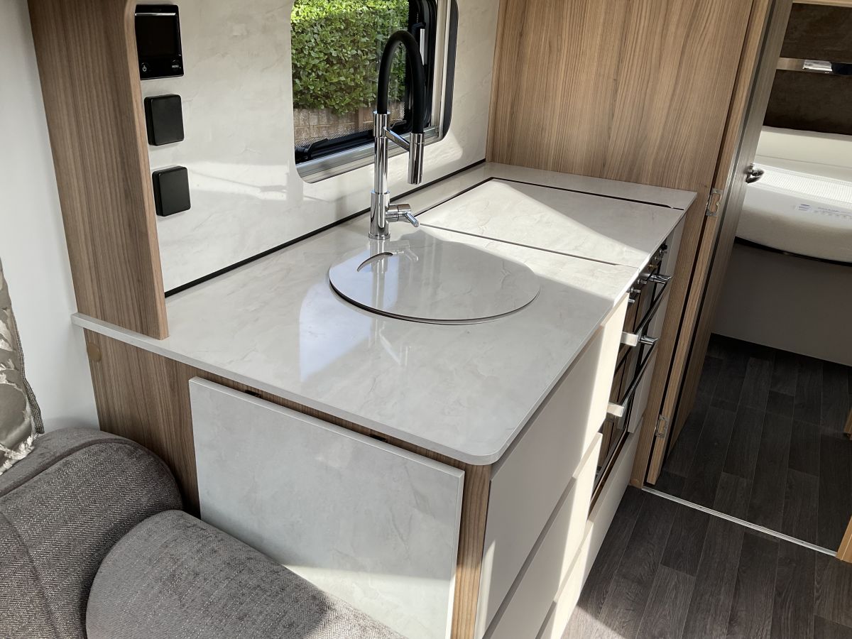 Huge spec which includes: Powrtouch auto mover, Alde wet central heating system, Alarm, ATC trailer control, Alko wheel lock, external 240v socket and gas bbq point, mood lighting, microwave, Sonos sound bar, solar panel, loose carpets, island bed and so much more
