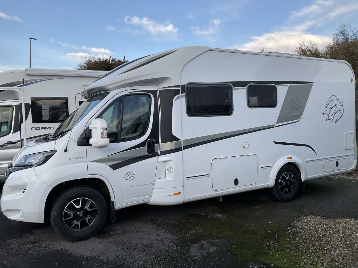 Lovely condition, smart and contemporary high spec 4 berth and 4 seatbelt low profile Knaus Motorhome. Great layout of fron L-shape lounge with an extra side seat and driver and passenger swivel seats combining to make an open lounge area. The end house a large fixed double bed and corner washroom with shower. Large front panoramic window lets in loads of light to this modern interior with gloss cupboards and neutral leather style upholstery. 36144 miles in lovely condition inside and out