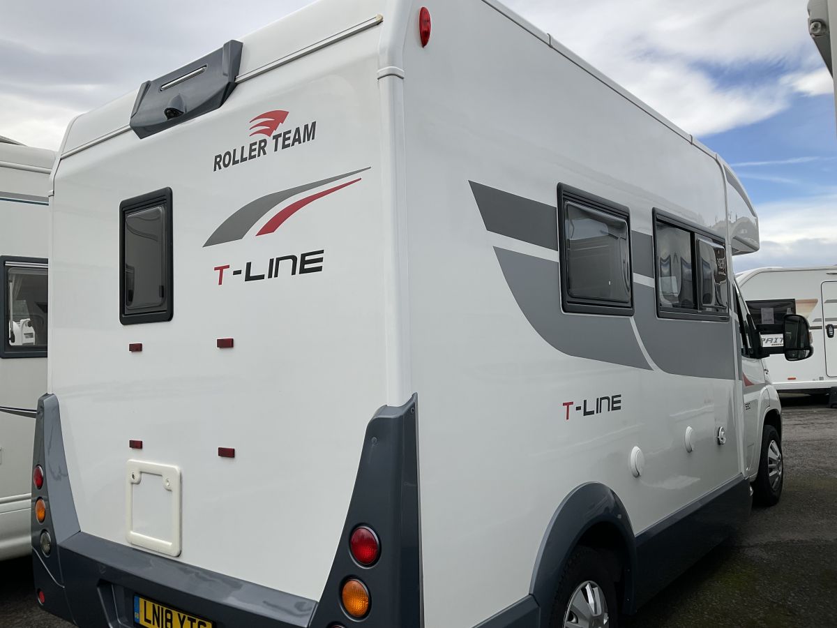 Lovely condition, compact and versatile layout on this modern styled 4 berth and 4 belt 2018 Rollerteam. With an Auto gearbox and just 26500 miles this model offers great value for money. Great layout of front lounge that converts to a double and electric drop down bed, driver and passenger swivel seats and end washroom with great storage including a rear access locker to the main washroom area wardrobe. Great spec and a lovely modern finish